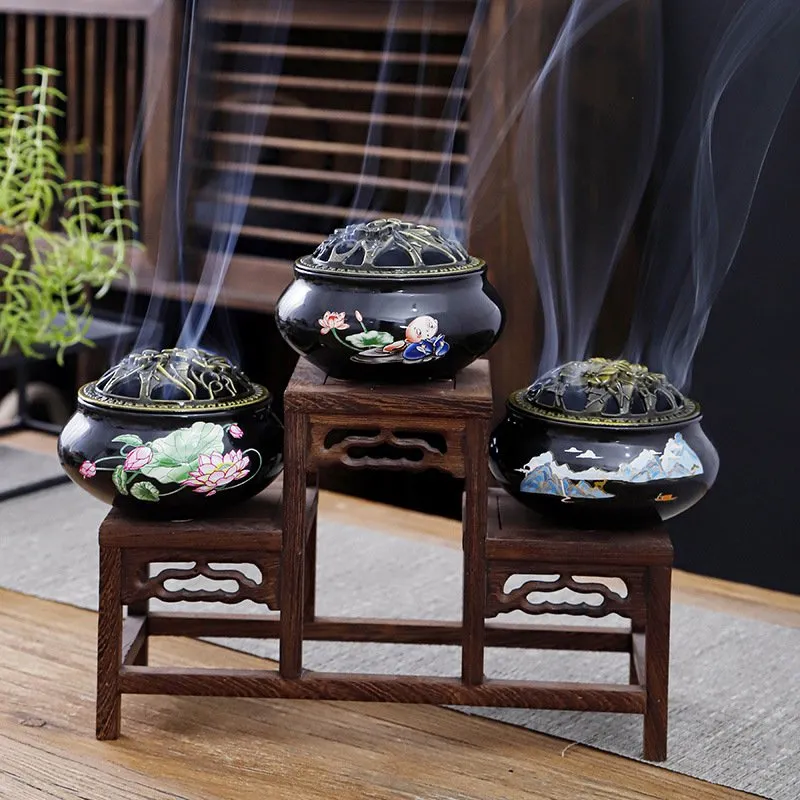 ✡️ Sử dụng lư xông trầm gốm tráng men để xông trầm có tác dụng chữa bệnh.